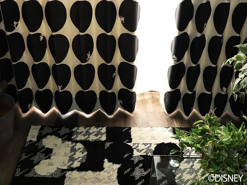 一見ディズニー柄と気が付かないほど、さりげなくミッキーが配置されたテキスタイル。お洒落でかっこいいドレープカーテンです。