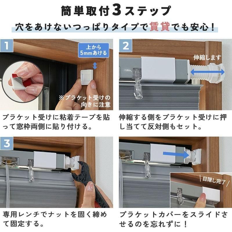 窓枠上部より5mm程度離して貼り付けてください。接着部分に凸凹や汚れがある場合ブラインド落下の原因になります。ご注意ください。