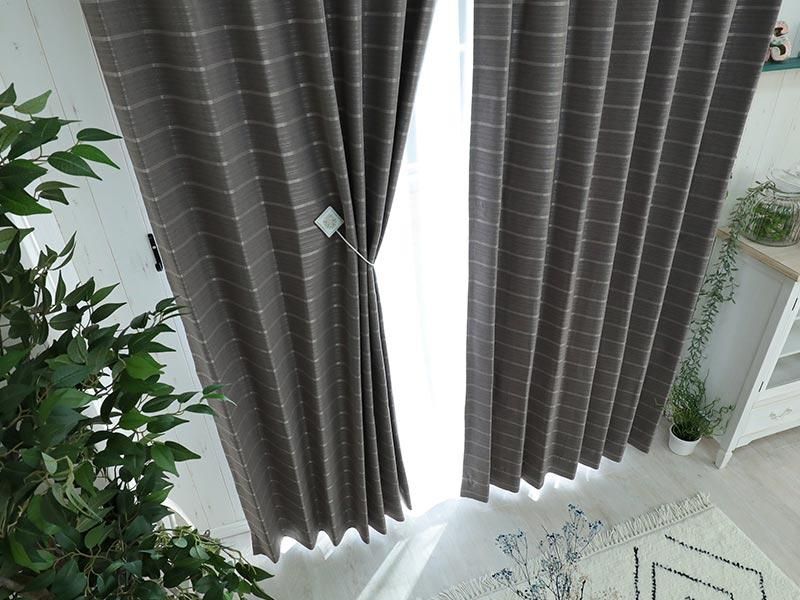 細めの変則ボーダー柄が洗練された雰囲気のドレープカーテン。