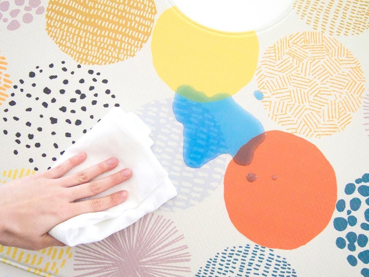 | 注意 | ※商品を強くこすると色落ちする可能性があります。 ※長時間同じ場所で使用したり、ホットカーペットや床暖房など暖房器具の上での使用は、床面がべたついたり変色することがあります。目安として1週間ごとに使用場所を移動したり、床面を拭いてご使用ください。 ※本品は洗えません。汚れた場合はぬるま湯や中性洗剤を含ませた布などで拭き取ってください。 ※折りたたんで保管している為、商品に折り癖が付いていることがあります。 使用していくと、折り癖が目立たなくなっていきます。 ※ご覧のモニターの環境、撮影環境により実物と色味が異なって見える場合が御座います。 |