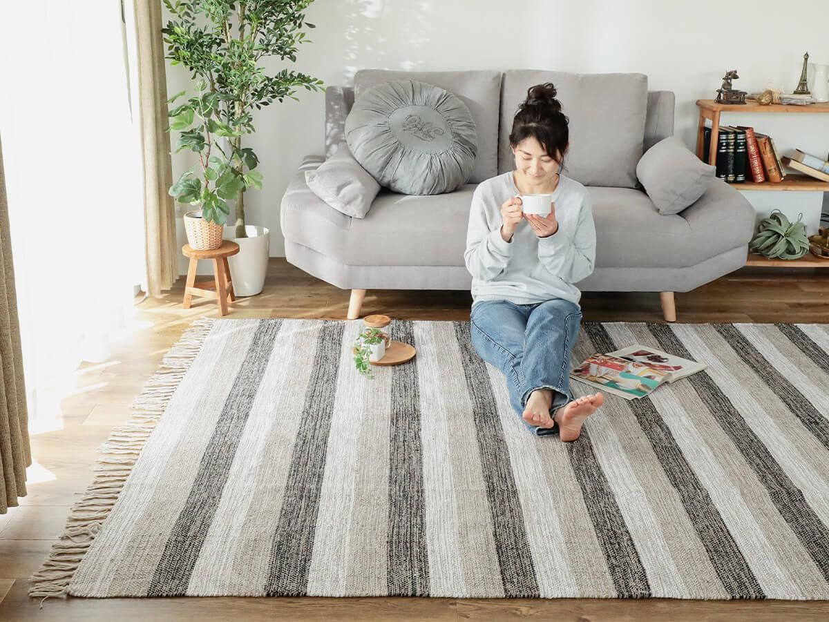 【ホットカーペット&床暖対応】【綿・綿混】【〜10000円】【ベージュ】【ナチュラル】【モダン】【カジュアル】【アジアン】【インド】【手織り・ハンドメイド】【裏面なし】【約140x200cm】