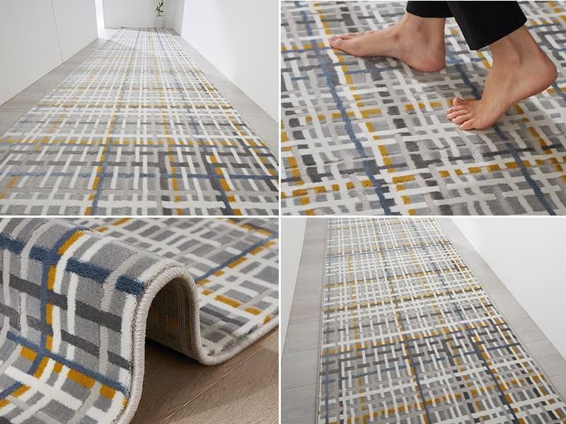 【廊下敷き】【ブラック・グレー】【モダン】【遊び毛防止】【ホットカーペット&床暖対応】【ポリプロピレン】【ウィルトン織り】【無料サンプルあり】【裏面なし】