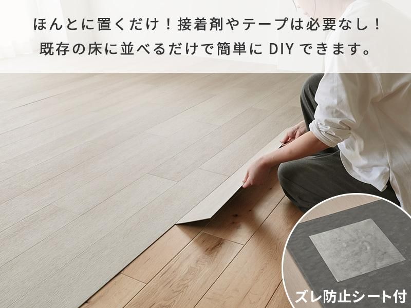 ※ご覧のモニターの環境、撮影環境により実物と色味が異なって見える場合が御座います。 ※温風ヒーターの熱風や反射ストーブの熱気等が、直接床材に集中的に当たると「浮き」の原因となる場合がございます。 ※本品は床暖房には使用できません。 ※温度変化により伸縮します。 ※温度差が大きくなる環境下では、床材が伸縮を起こしやすくなり、隙間が空いたり膨張により床材同士が突き上がる可能性がございます。 ※浮きや隙間を放置すると、「転倒の危険」や、「ホコリがたまる原因」になります。 ※若干寸法にバラツキがあります。施工の際にはご注意ください。 ※タイル一枚一枚の色柄に変化と濃淡があります。この不均一感が、仕上がったフロアにより一層の自然感をもたらします。タイル間での柄合わせはできません。 ※ご使用前に床を拭いてからご使用下さい。 ※ワックスを使用している場合など、床のコンディションによりこびりつきの原因となる場合が御座います。 ※フロアタイルによる床材の痛みなどの保証は致しかねますので、ご了承下さいませ。 ※フロアタイルを敷く前に、アルコールなど揮発性の高いもので床をふきあげたりすると癒着の原因となる場合があります。 |