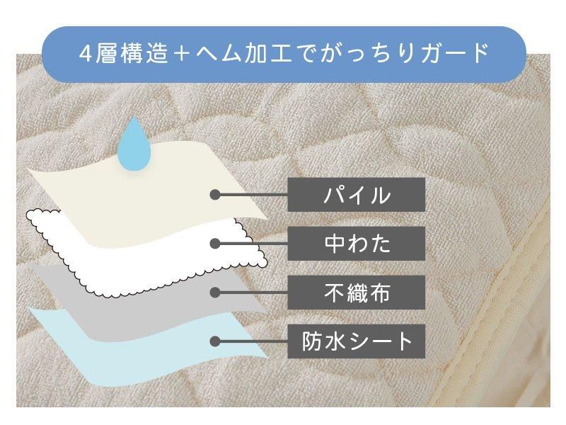 | ご注意 | ※無地カラー及びプリント加工臭は、少なからず有りますので、陰干しもしくは水洗いしてからご使用をお願いいたします。 ※水分がついた状態で長時間放置しないで下さい。 ※必ず水平な場所でご使用下さい。 ※厚さ25cmまでのマットレス・敷き布団のどちらでもお使いいただけます。 ※ご覧のモニターの環境、撮影環境により実物と色味が異なって見える場合が御座います。 |
