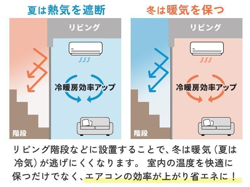 リビング階段やリビングドアからの冷気/暖気を防いで節電対策!(通常時、スリット部分は閉じています)