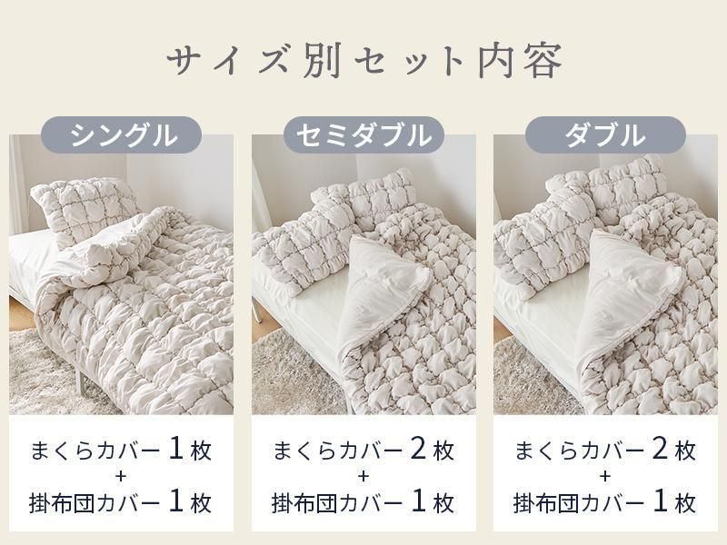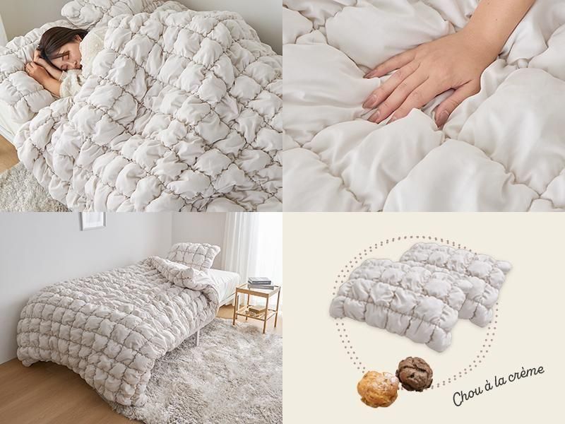 > 寝具・ふとん > カバーリング > ぽこぽこデザインがシュークリームのような、かわいい韓国風おしゃれベッドシーツ。掛け布団カバーと枕カバーがセットの洗濯機で洗える寝具カバーセット『シュークリーム アイボリー』