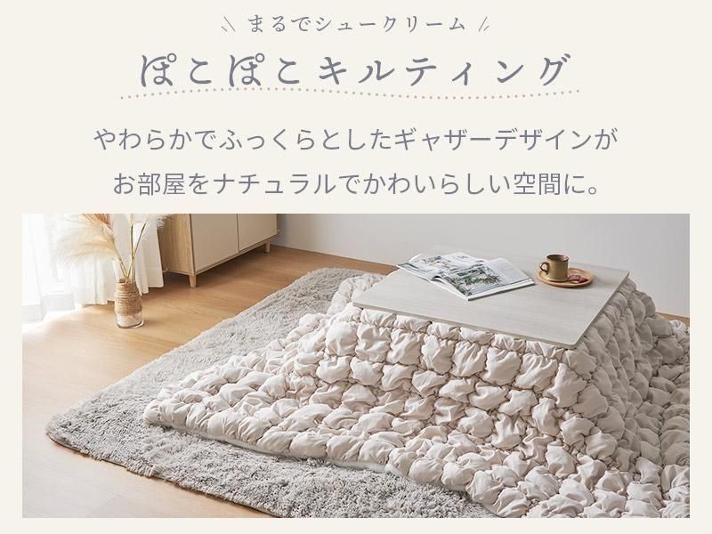 > インテリア用品 > ぽこぽこデザインがシュークリームのような、かわいい韓国風おしゃれコタツ布団。裏面ラビットファー調のふわふわで、洗濯機で洗えるあったかこたつ布団『シュークリーム アイボリー』