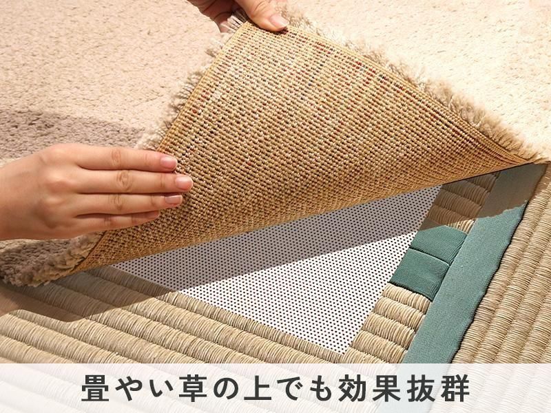 カーペットに使用できるのはもちろん、今までになかった畳やい草にも使用できるので使用の幅がぐっとひろがります。ラグやマットの下に敷いても盛り上がりが目立ちにくい厚みです。