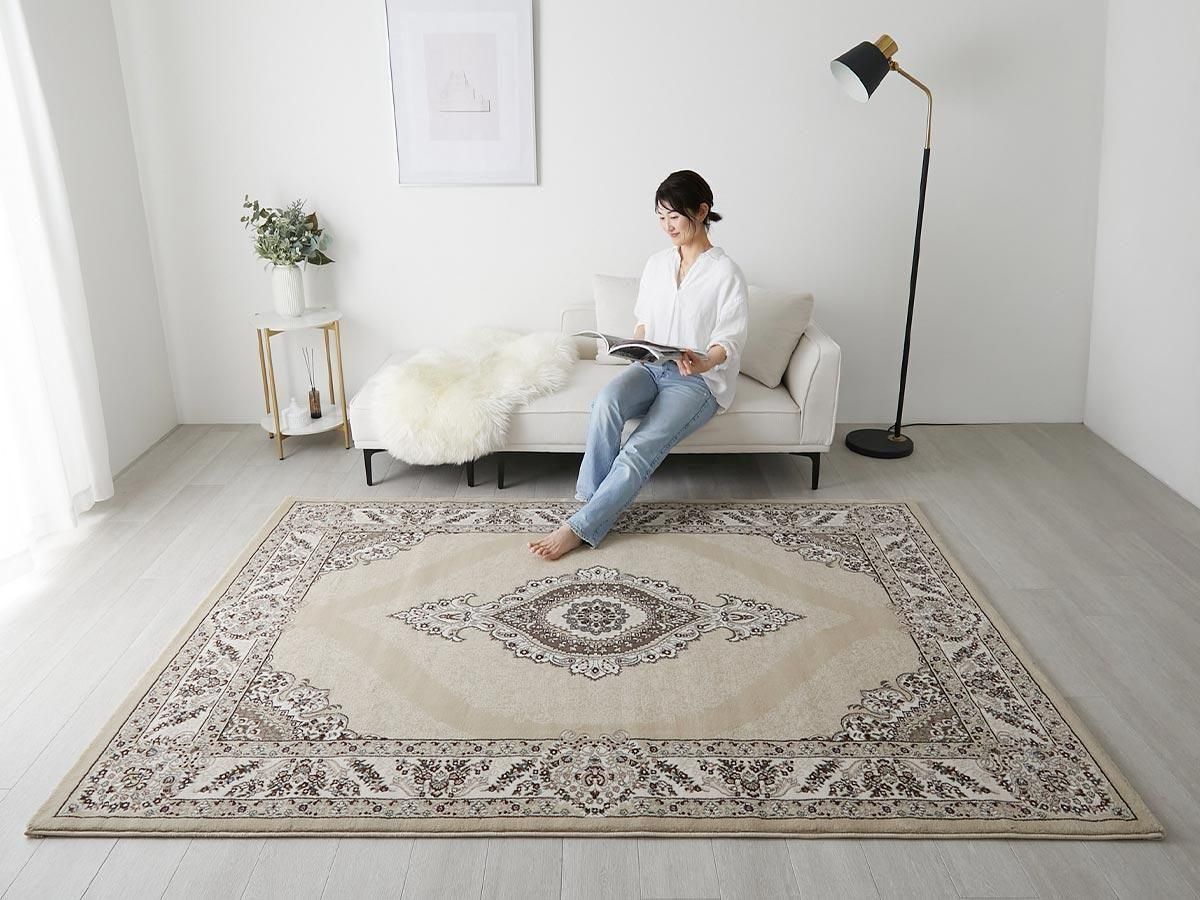 【約160x230cm】【約200x250cm】【約240x240cm】【約240x340cm以上】【ベージュ】【ラグジュアリー】【エレガンス】【〜30000円】【〜50000円】【50001円〜】【遊び毛防止】【ホットカーペット&床暖対応】【防炎】【ポリプロピレン】【ウィルトン織り】【トルコ】