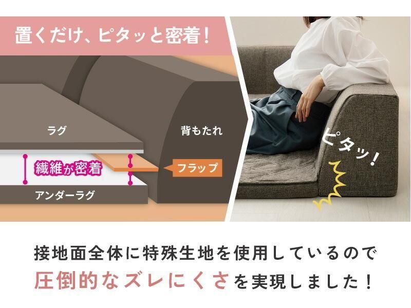 > 低反発・ウレタン入りラグ > 【選べるセット】背もたれが動かせるローソファーラグ!圧倒的密着度でピタっとズレないラグカバーと背もたれ付。洗えるカバー『ピタレス ラグ+背もたれクッションセット』