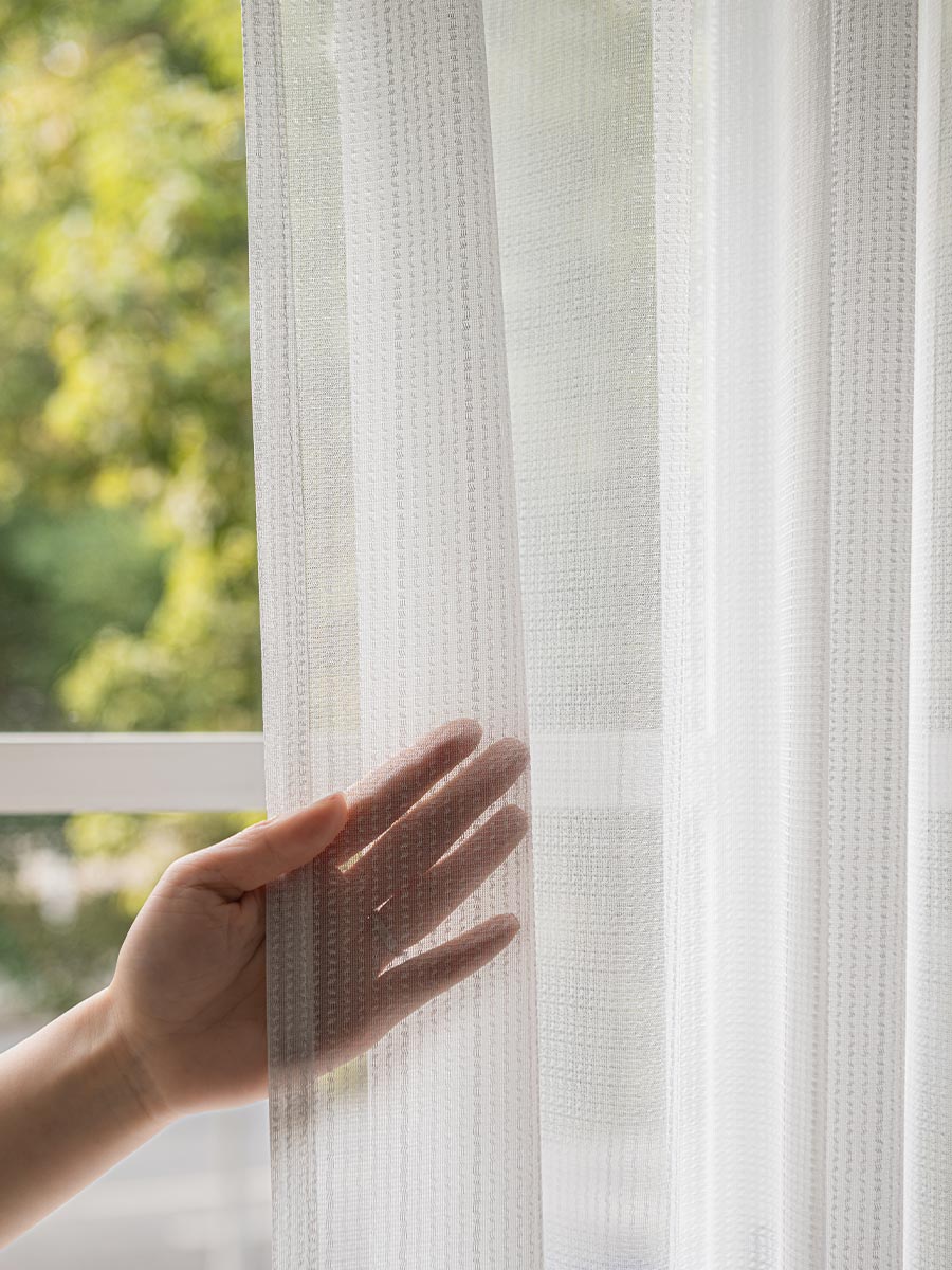 ブライト糸(光沢のある糸)を使用し、光を反射することで昼間、外から室内がみえにくく遮熱効果やUVカット作用があります。ミラー効果は外が明るい時に発揮されます。