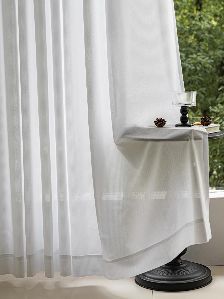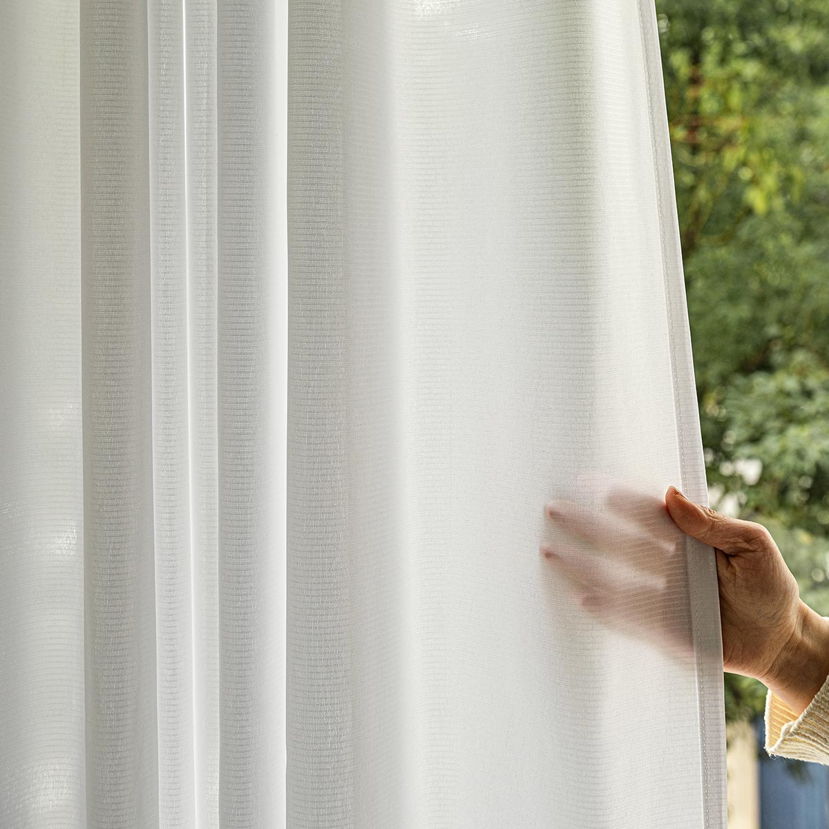 昼も夜も、外から室内が見えにくいレースカーテンです。明かりをつけてもシルエットが映りにくく、プライバシーを守ります。日中は光を取り入れ、夜は厚手カーテンがなくても中が見えにくいので、1枚使いにおススメの効果です。