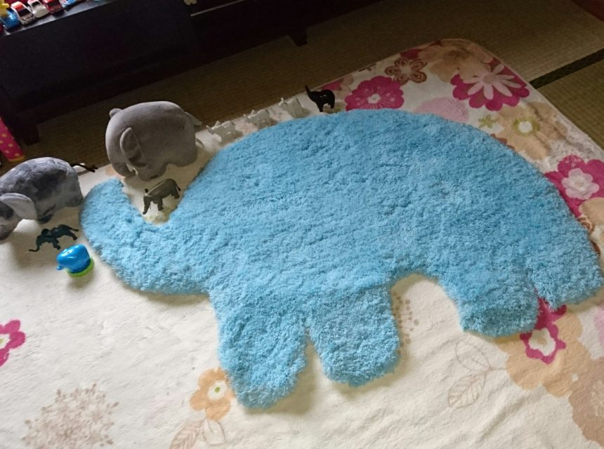 重たくはない商品で御座いますので、遊び場所に合わせて一緒に移動させることも可能で御座いますので、このゾウラグの上がお気に入りの場所のではないでしょうか(*бωб)
