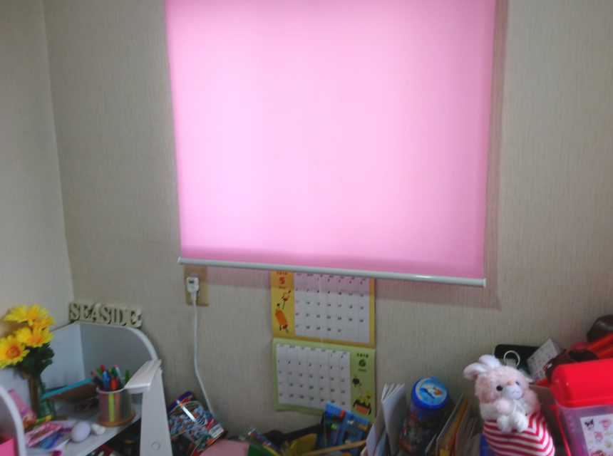 子供部屋に可愛いピンクのロールカーテンを購入しました。
